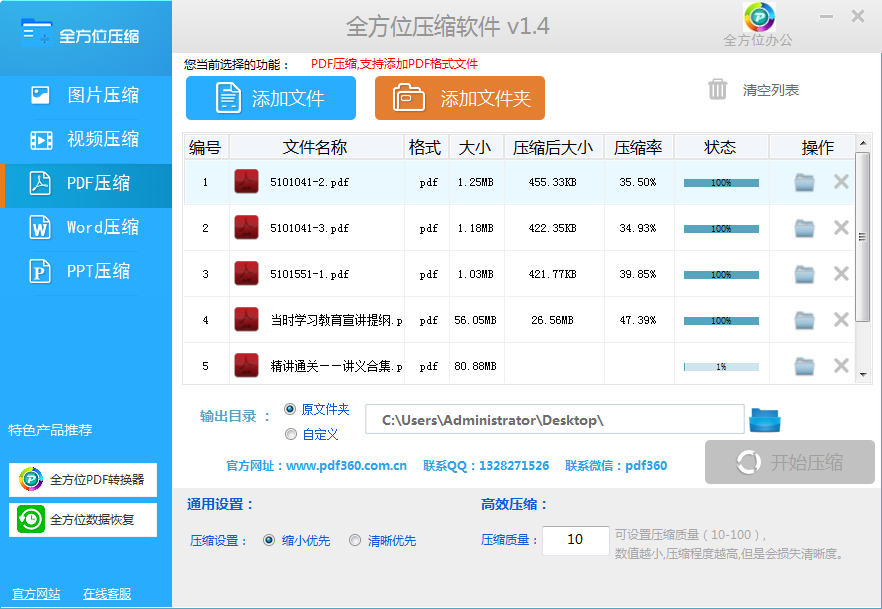 全方位壓縮軟件是一款功能強(qiáng)大的文件壓縮工具,支持視頻、圖片以及音樂(lè)等文檔在線壓縮,非常簡(jiǎn)單的操作方式可以快速壓縮所需要的文件內(nèi)容。