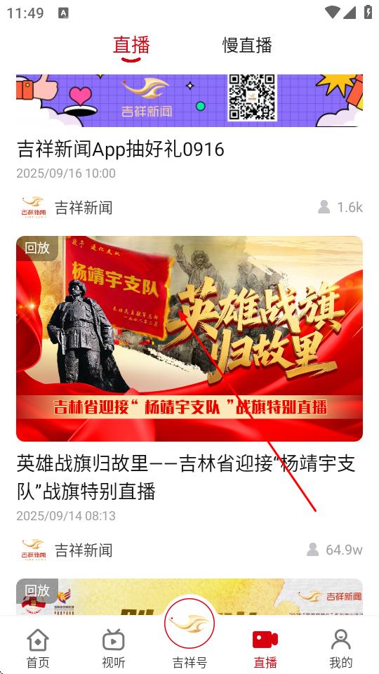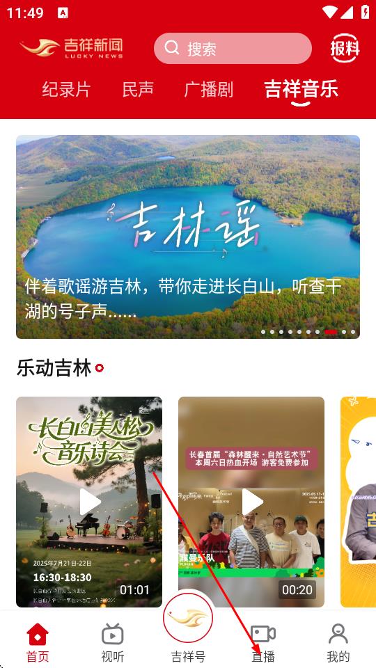 1、打開吉祥新聞App,點擊底部導(dǎo)航欄中的直播選項。