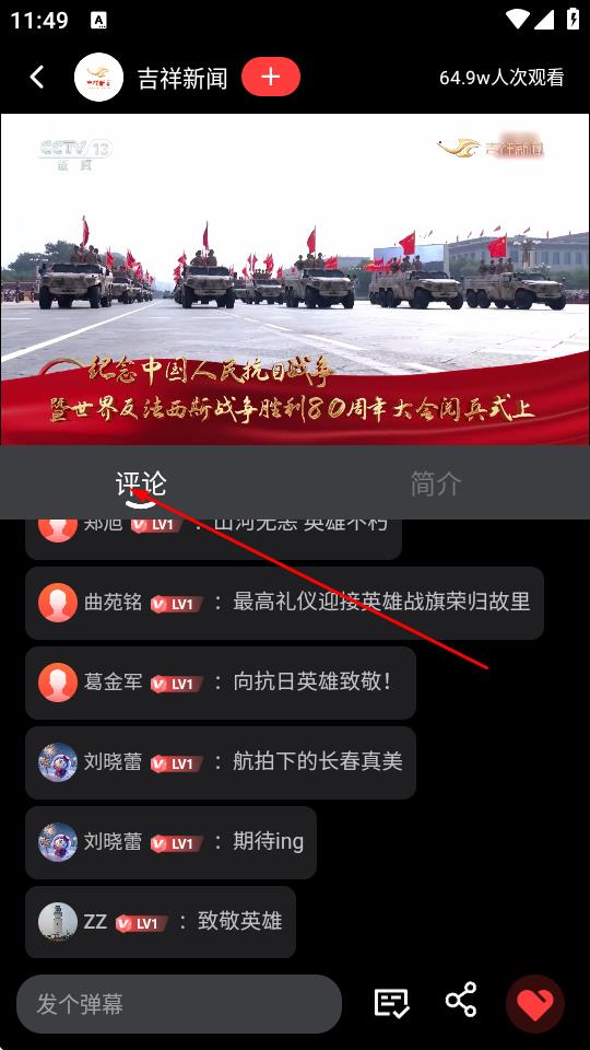 4、觀看過程中,點擊屏幕下方的評論標簽,可查看其他用戶的評論。