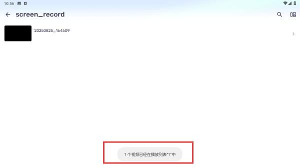 4、選擇后,底部會(huì)提示1個(gè)視頻已添加在播放列表1中,即表示添加成功。