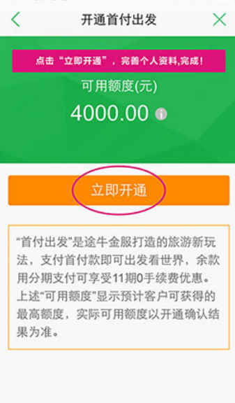 途牛金服旅游網(wǎng)全面開放分期出游服務(wù),正式上線旅游分期付款業(yè)務(wù):首付出發(fā),總計預(yù)授信額度達(dá)70億元。首批公測名額超過百萬,通過該批次途牛首付出發(fā)資格審核的用戶,最高可獲2.5萬元信用額度。首付出發(fā)是途牛金服打造的旅游新玩法,支付首付即可出發(fā)看世界,余款用分期支付可享受11期0手續(xù)費(fèi)優(yōu)惠。途牛金服首付出發(fā)就是要幫助年輕人,在時間比較充裕的年輕時代,與好朋友一起出發(fā),體會世界、開闊眼界,讓說走就走的旅游不在有壓力!