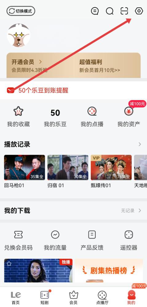 1、打開樂視視頻點擊底部導航欄的我的,找到并點擊設置圖標,進入設置的界面。