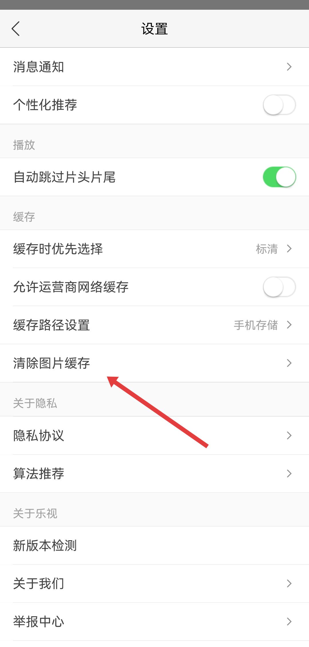 2、進入設置的界面后,需要找到清除圖片緩存的選項,點擊該選項。
