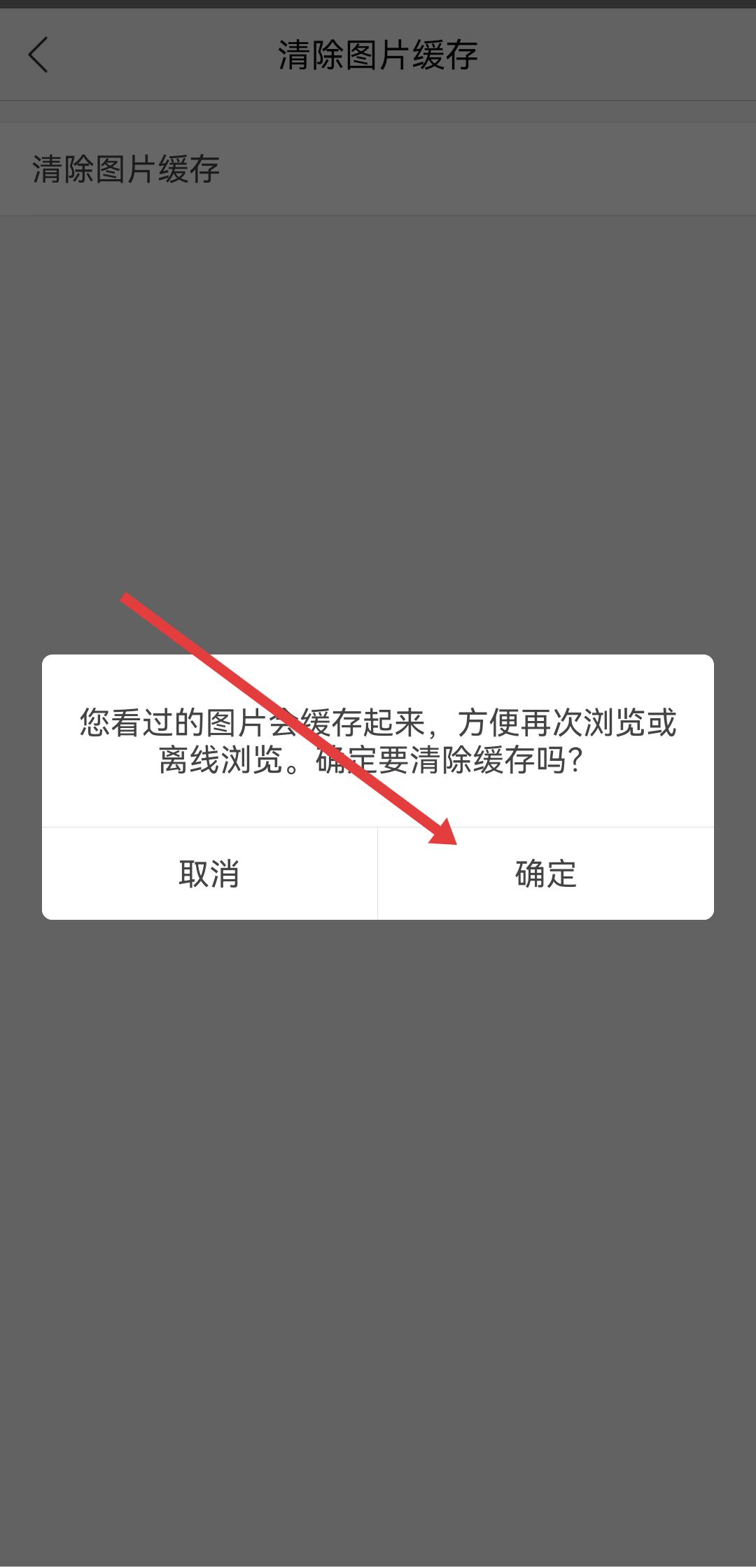 3、仔細閱讀提示框中的內容后,若確認要清理圖片緩存以釋放存儲空間,點擊確定按鈕。