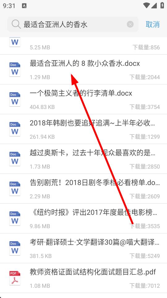 3、輸入關(guān)鍵詞后界面會顯示搜索結(jié)果,點擊感興趣的文件。