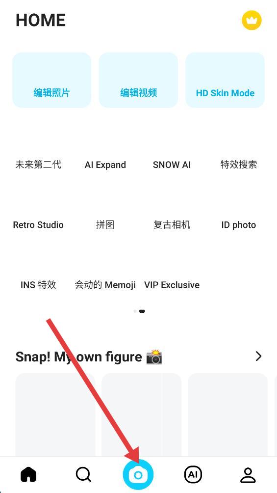 1、打開app,點(diǎn)擊底部導(dǎo)航欄中間的相機(jī)圖標(biāo),進(jìn)入拍攝界面。