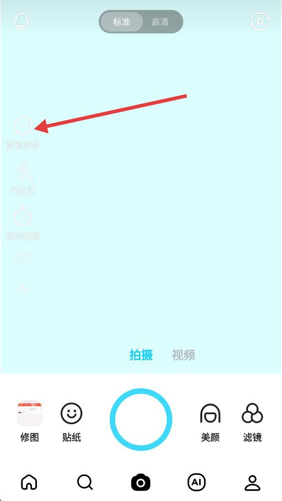 2、在拍攝界面中,點(diǎn)擊左側(cè)欄最上方的查看更多按鈕。