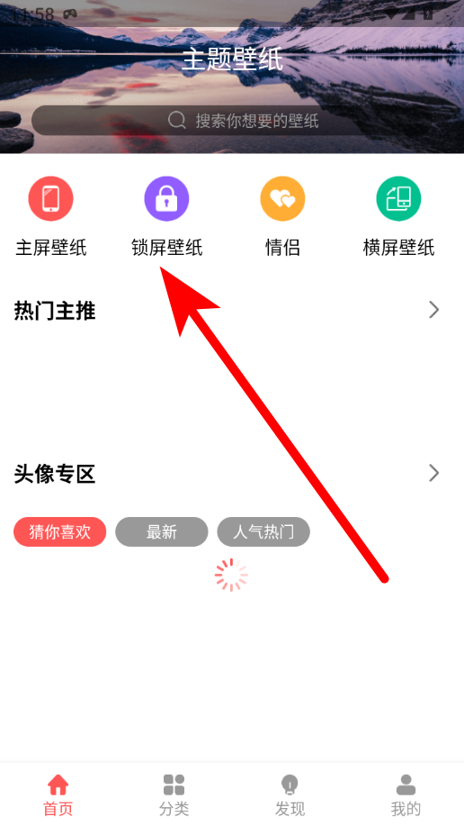 2、進(jìn)入應(yīng)用界面后,需要點(diǎn)擊鎖屏壁紙。