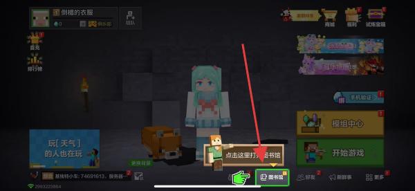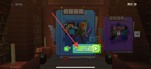 1、在我的世界主界面,點(diǎn)擊點(diǎn)擊這里打開圖書館按鈕,進(jìn)入新手引導(dǎo)相關(guān)選擇頁面。