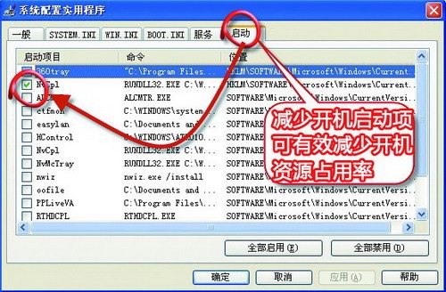 如果要獲得更快的游戲速度,可以點(diǎn)擊“開始”→“運(yùn)行”→“msconfig”,然后在啟動(dòng)項(xiàng)中減少啟動(dòng)時(shí)的加載程序數(shù)量。