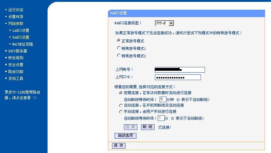 單擊網(wǎng)絡(luò)參數(shù)-WAN口設(shè)置可以看到撥號設(shè)置: