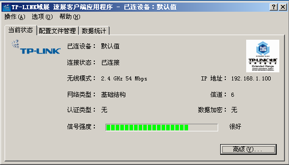 TP-LINK光盤自帶的管理程序叫做域展,速展客戶端應用程序,安裝完成后運行會在托盤處出現(xiàn)這樣的標志: 綠色表示信號較好,@@表示中等,紅色表示較差。