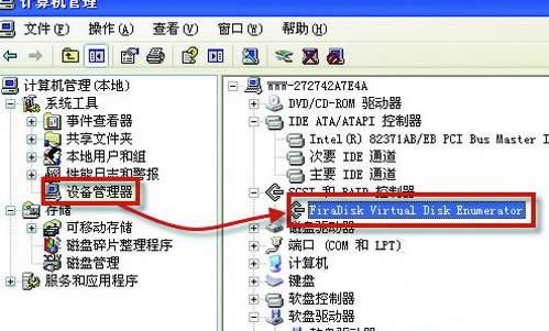 首先需要下載一個修改好的“內(nèi)存版XP”,具體的下載地址大家利用搜索引擎就可以找到。將下載的“內(nèi)存版XP.RAR”解壓到E盤根目錄下并打開“E:內(nèi)存版 XP”目錄下的“firadisk”文件夾,接著右擊該文件夾下的“firadisk.inf”,選擇“安裝”,完成firadisk的安裝操作并按照提示重啟系統(tǒng);再右擊桌面的“我的電腦”圖標,選擇“管理”,打開“計算機管理”的“系統(tǒng)工具→設(shè)備管理器”分支,此時在右邊的顯示區(qū)域就可以看到一個名為 “Firadisk Vitrual Disk Enumerator”的設(shè)備,這就表示firadisk已經(jīng)安裝好了。