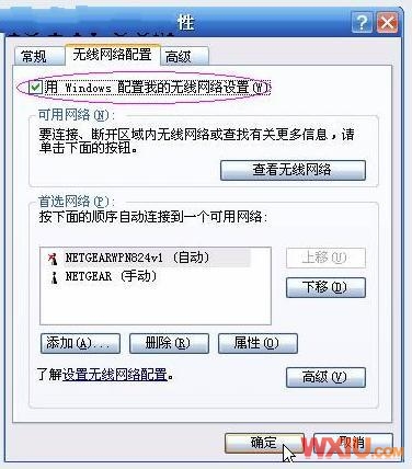 2、桌面右鍵點(diǎn)“網(wǎng)上鄰居”選擇屬性 > 右鍵點(diǎn)無線網(wǎng)絡(luò)連接,選擇屬性 > 無線網(wǎng)絡(luò)配置,勾取使用windows來配置我的無線連接,點(diǎn)確定。