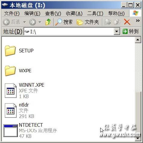 為了防止誤刪除文件,可選中MINIPE、SETUP、WXPE文件夾和WINNT.XPE文件,右擊,選擇“屬性”,再選中“隱藏”框?qū)⑺鼈冸[藏起來(lái)。然后分別右擊NTDETECT.COM和ntldr,用相同的方法將它設(shè)置為隱藏屬性。這樣我們?cè)谝苿?dòng)硬盤上就看不到這些文件了,誤刪除的機(jī)會(huì)也降低了許多。