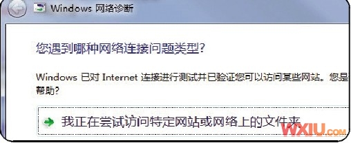 以現(xiàn)在流行的Windows 7為例子進行介紹吧,右鍵點擊系統(tǒng)托盤區(qū)的網(wǎng)絡(luò)連接圖標(biāo),選擇“疑難解答”,系統(tǒng)會彈出一個“Windows網(wǎng)絡(luò)診斷”的對話框,在這里選擇遇到了哪些問題,如果打不開網(wǎng)站則選擇“我正在嘗試訪問特點網(wǎng)站或者網(wǎng)絡(luò)上的文件夾”。