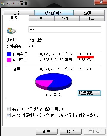 - 點擊屬性,會彈出屬性界面對話框如下圖,看到在常規(guī)下會有個磁盤清理。