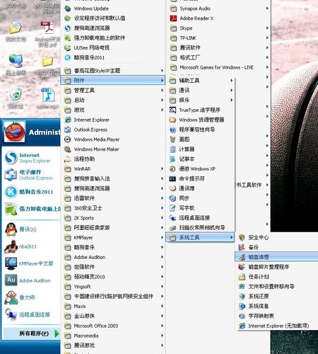 - 點擊開始-所有程序-附件-系統(tǒng)工具--磁盤清理。