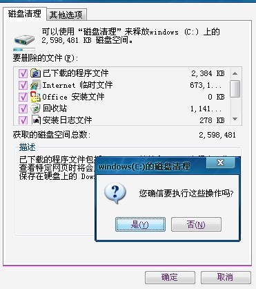 - 清理完畢后,會彈出對話框讓我們確定。我們可以看到,已用空間減少了,騰出了一些空間了,這樣可以使我們的計算機運行的更快啦。