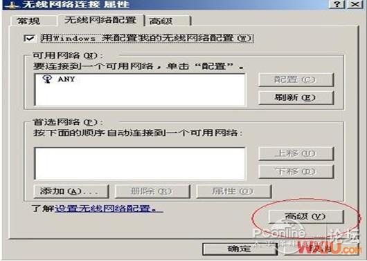 主機(jī)的虛擬AP配置1、在打開“無線網(wǎng)絡(luò)連接屬性”后,選擇“無線網(wǎng)絡(luò)配置”一項(xiàng)并單擊右下角的“高級”按鈕,(圖1)。