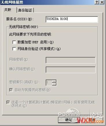 (2)將“自動為我提供密鑰”的對號去掉,將數(shù)據(jù)加密選項(xiàng)改成“已禁用”,依次點(diǎn)擊 “確定”按鈕退出。然后在首選網(wǎng)絡(luò)中出現(xiàn)剛才設(shè)置的“abc”網(wǎng)絡(luò)。