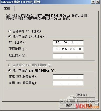 主機(jī)、副機(jī)的IP設(shè)置1、首先設(shè)置主機(jī)的無線網(wǎng)卡TCP/IP屬性,在無線網(wǎng)絡(luò)連接項(xiàng)屬性對話框的“常規(guī)”選項(xiàng)卡中設(shè)置IP地址。兩臺機(jī)子設(shè)置成同網(wǎng)段的,例如:“192.168.0.X”(X是代表一個數(shù)值,從0到255都可以),子網(wǎng)掩碼設(shè)置為 255.255.255.0。進(jìn)入副機(jī)的無線網(wǎng)卡 TCP/IP 屬性,將IP地址和DNS地址全部選為自動獲取,確定即可。