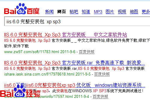 - 先在百度找到IIS 6.0,然后下載下來,當(dāng)然其它的版本也可以,我這個(gè)是為了湊合系統(tǒng)。