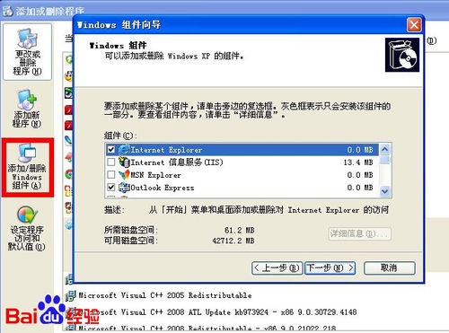 - 這時(shí)會(huì)彈出對(duì)話框,我們選擇添加/刪除windows組件,然后又彈出windows組件向?qū)?nbsp;