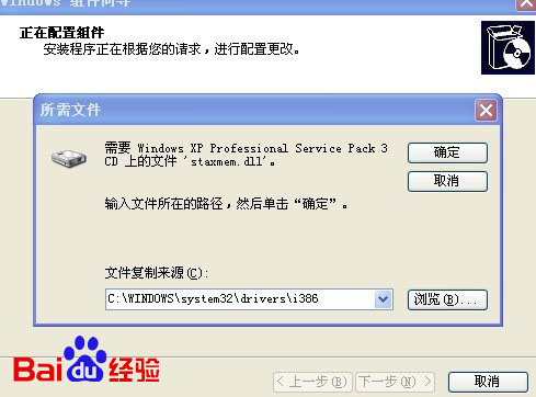 - 在安裝的過程中有幾個(gè)時(shí)候是會(huì)彈出需要文件復(fù)制來源的,這時(shí)候我們下載的東西就起到作用啦,點(diǎn)擊瀏覽找到剛解壓的路徑。