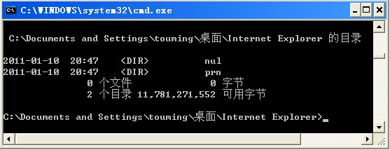 在該圖標(biāo)上點(diǎn)右鍵,發(fā)現(xiàn)該Internet Explorer圖標(biāo)是一個(gè)文件夾偽裝的,于是在開(kāi)始菜單-->附件 運(yùn)行cmd.exe進(jìn)入該文件夾用dir命令查看該文件夾的內(nèi)容,原來(lái)該文件夾里又有"nul" 和 "prn"兩個(gè)目錄,于是明白了為什么該文件夾無(wú)法刪除了。