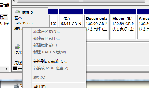 進(jìn)系統(tǒng)后恭喜安裝成功了,也可以在計(jì)算機(jī)右鍵菜單里選著擇管理點(diǎn)磁盤在剛剛轉(zhuǎn)換后的磁盤點(diǎn)右鍵