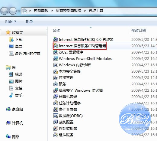 三、安裝完成后,再次進(jìn)入 控制面板,選擇 管理工具,雙擊 Internet(IIS)管理器 選項(xiàng),進(jìn)入IIS設(shè)置。