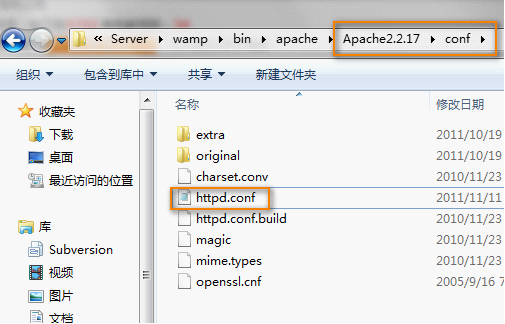 首先我們找到apache的配置文件httpd.conf,通常情況下,該配置文件在apache安裝目錄下的conf文件夾中(如圖4)。