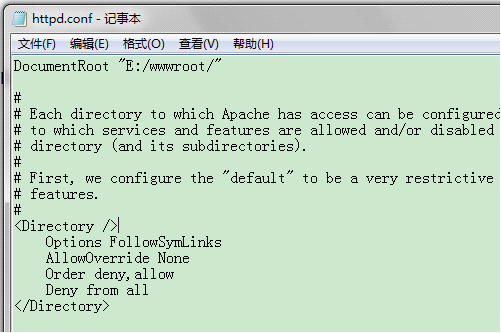 在Apache中,沒有Windows 下IIS的圖形管理界面,我們需要手工修改下apache的配置文件,來進行目錄腳本的執(zhí)行權限的設定。