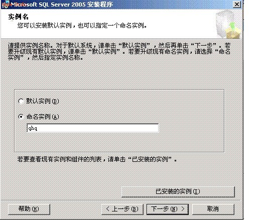 接下來在“實例名”中這是比較關(guān)鍵的一步,如果機子上沒有別的Sql版本的,選擇默認實例名就行了,但是由于我本上原裝有Sql2000,所以這一步得選“新實例名”,然后輸入實例名,實例名可以由A-Z或a-z的16位字母組成。