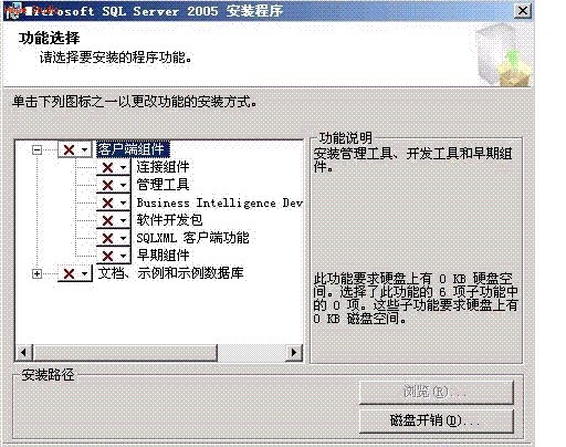 接著我們進入最重要的一步:功能選擇。這里必須將客戶端組件全部選擇安裝至本地。