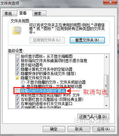 在文件夾選項(xiàng)卡,在“查看”選項(xiàng)卡下,找到高級(jí)選項(xiàng),把“隱藏已知文件的擴(kuò)展名”這個(gè)選項(xiàng)取消勾選。然后選擇“確認(rèn)”