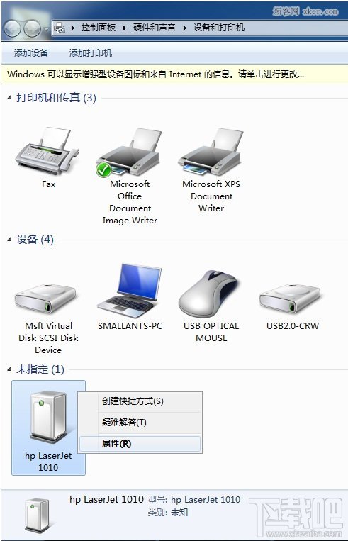 3.打印機(jī)出現(xiàn)在未指定設(shè)備中,點(diǎn)擊屬性