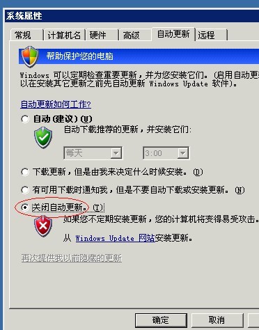 關(guān)閉自動(dòng)更新(我的電腦-->右鍵-->屬性-->自動(dòng)更新-->關(guān)閉更新)就好了