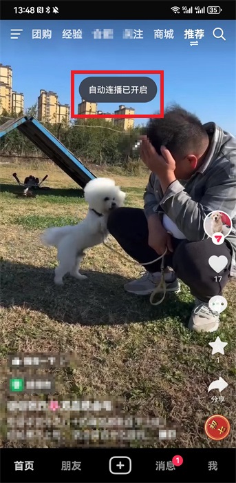 3、開啟該功能之后就可以會到視頻播放頁面,可以在上方看到提示語就是【自動連播已開啟】,就可以正常使用自動連播功能,當前的視頻播放完畢之后就會自動跳轉(zhuǎn)到下一個視頻,如果是用手刷視頻也可以不受影響,正常的自動連播,如果想要關(guān)閉,也是這個操作方式。