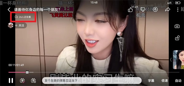 3、橫過來視頻之后,我們就可以做左上角看到目前正在觀看的人數(shù),實(shí)時(shí)的發(fā)生變化。