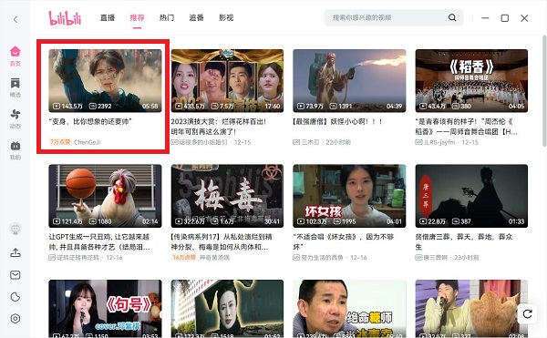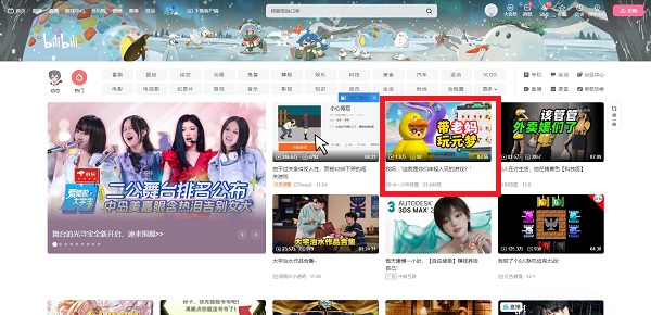 1、進(jìn)入到嗶哩嗶哩的網(wǎng)頁(yè)端界面,在界面中還是隨便尋找一個(gè)視頻,點(diǎn)擊進(jìn)入到視頻播放界面;