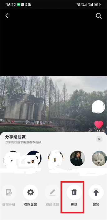 4、彈出的功能設置界面中,我們往左滑動功能,就可以在最后的功能中找到【刪除】按鈕,對視頻進行刪除;