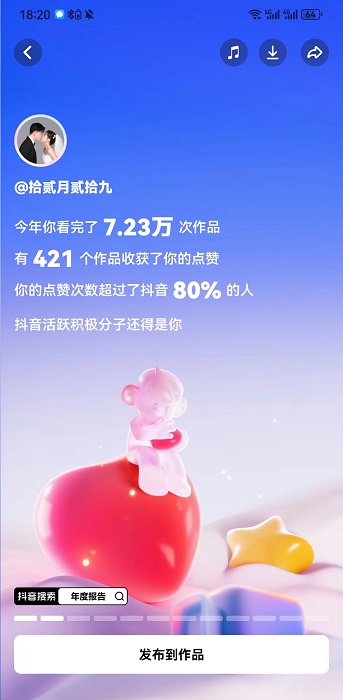 4、作滑之后就可以不斷的翻閱報(bào)告,查看抖音統(tǒng)計(jì)的年度內(nèi)容;