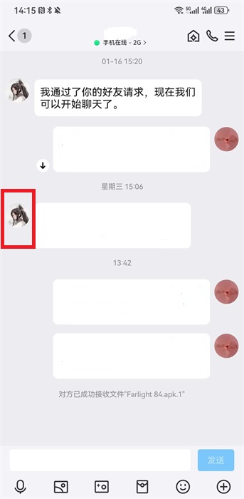 2、聊天界面中我們需要點(diǎn)擊對(duì)方的【頭像】,進(jìn)入到對(duì)方的資料界面;
