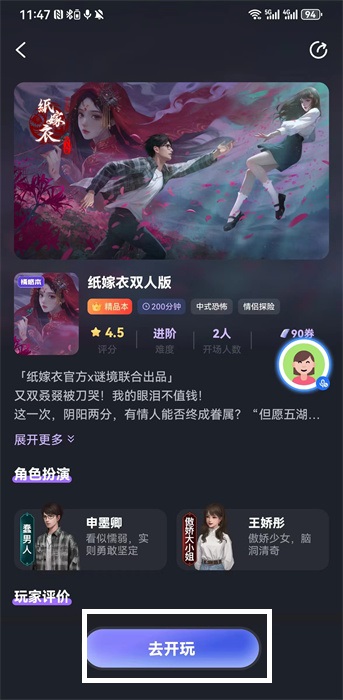 2、進入到副本庫中之后,選擇一個多人或者是雙人副本進入其中,以下以【紙嫁衣雙人版】為例點擊進入其中;