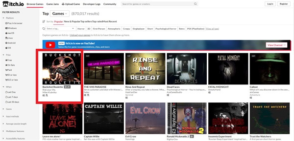 1、首先你需要進入到游戲的官方網(wǎng)站【itch.io】,在游戲平臺的官網(wǎng)上,就可以看到該游戲,點擊游戲進入到游戲詳情界面;