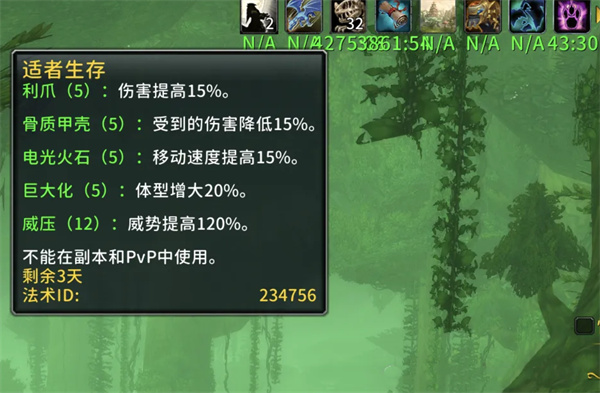 3、不斷與隊友互相使用恐龍魔精,直至適者生存Buff疊加至20層,此時系統(tǒng)會自動賦予威壓Buff提升120%威勢,后續(xù)繼續(xù)使用魔精僅疊加威壓效果不再增加前置層數(shù)。