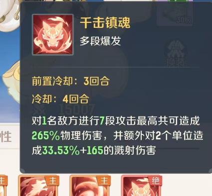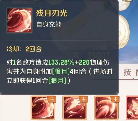 1、月鈴兒主動(dòng)技能狼月之擁可對(duì)一名敵方造成物理傷害并讓自身獲得持續(xù)四回合的狼月?tīng)顟B(tài),進(jìn)場(chǎng)還能立即獲取一回合該狀態(tài),為后續(xù)輸出增傷做好鋪墊。