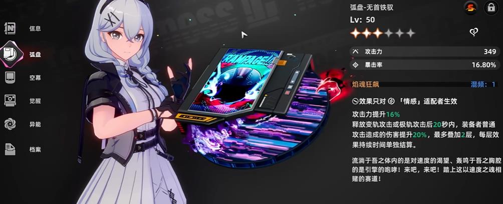 2、武器系統(tǒng)以弧盤為核心需根據(jù)角色屬性搭配,例如狼哥適配無(wú)首鐵馭弧盤可在極限時(shí)間內(nèi)快速觸發(fā)增傷效果,坦克選擇日蝕弧盤能有效規(guī)避技能傷害,提升大世界探索的生存保障。